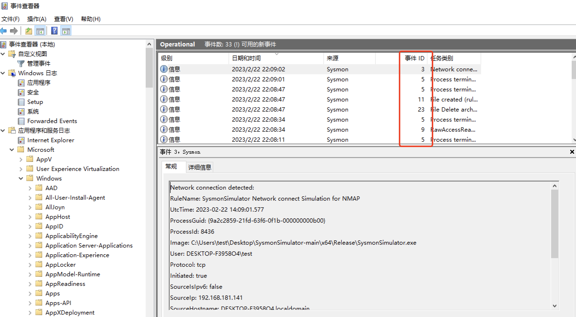 SysmonSimulator -eid <EventID> 执行单个事件模拟