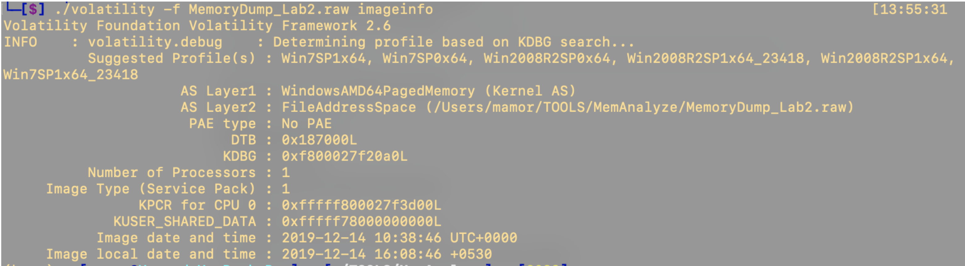 ./volatility -f MemoryDump_Lab1.raw imageinfo