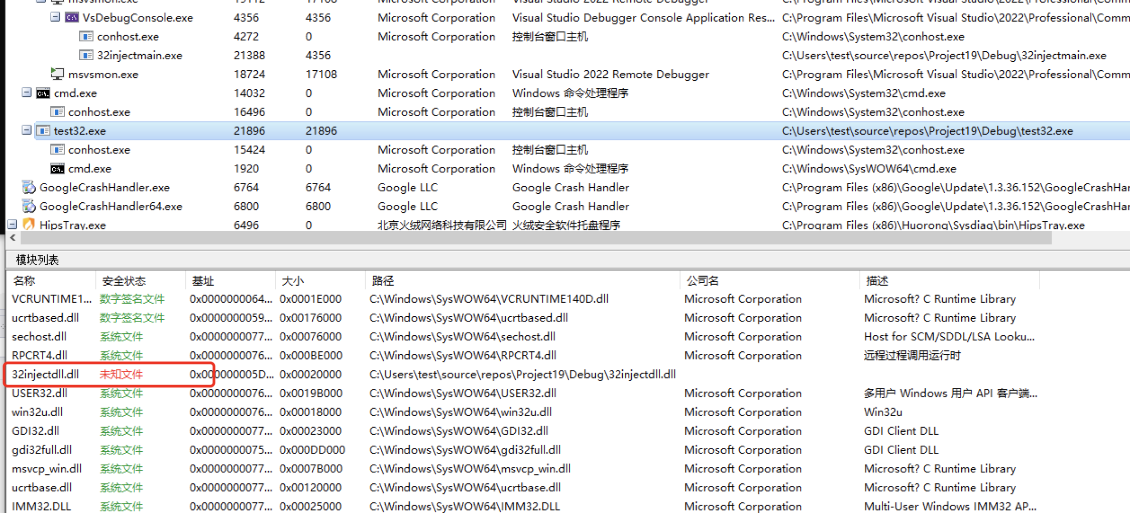 char* exename = "test32.exe"; char* dllname = "32injectdll.dll"; char* fnname = "fn"; dllinjectfn(exename, dllname, "fn");