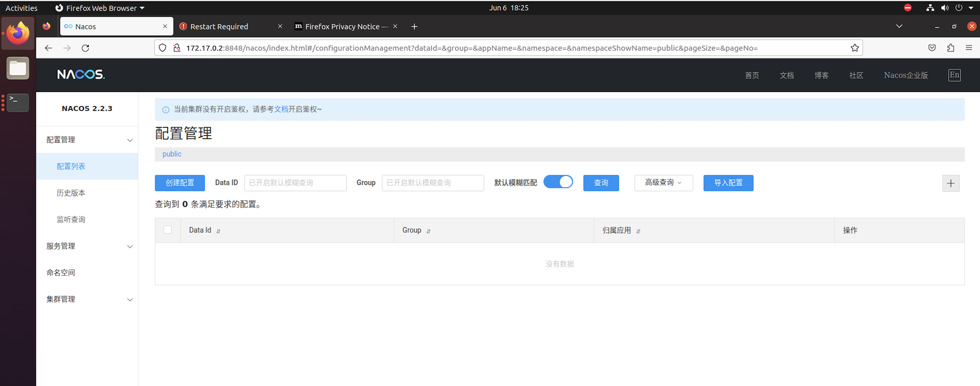 关闭后发现没有任何有效数据可以利用,然后又在 applicantion. 中恢复了鉴权。恢复鉴权后nacos的密码将会被重置为nacos,因此成功登录到了nacos的后台。
