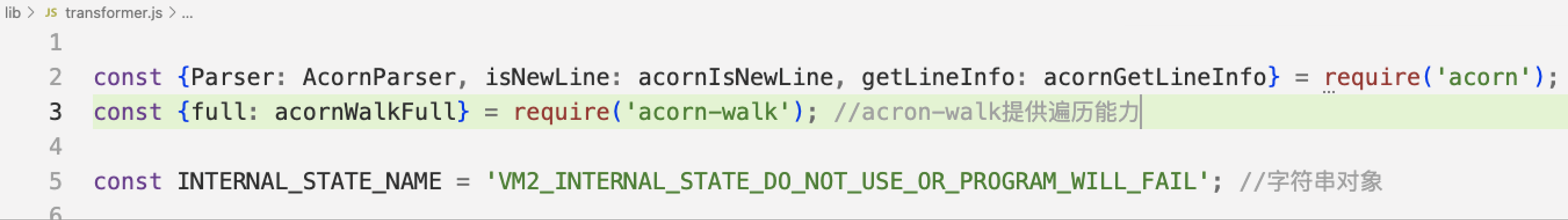 在transform.js中 先导入了acron(js的一个解析器) 和 acorn-walk(提供遍历) ,然后定义了一个字符串对象INTERNAL_STATE_NAME 后面也会再次用到